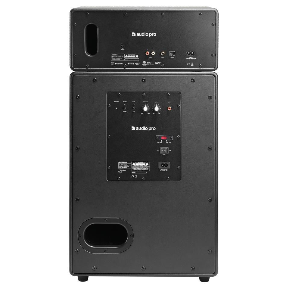 Alaosassa subbarielementti on 200 mm kokoinen ja varustettu 200 watin d-luokan vahvistimella. Säädöt löytyvät jakotaajuudelle ja äänenvoimakkuuden tasolle. Kytkimistä voi asettaa kaiuttimen lepotilaan tai kääntää vaiheen. Yläosassa taas on kaksi 110 millin elementtiä ja 25 mm kokoinen diskantti. Niitä siivittää 100 watin vahvistin. Kaksi kaiutinta pystyy kytkemään stereopariksi.
