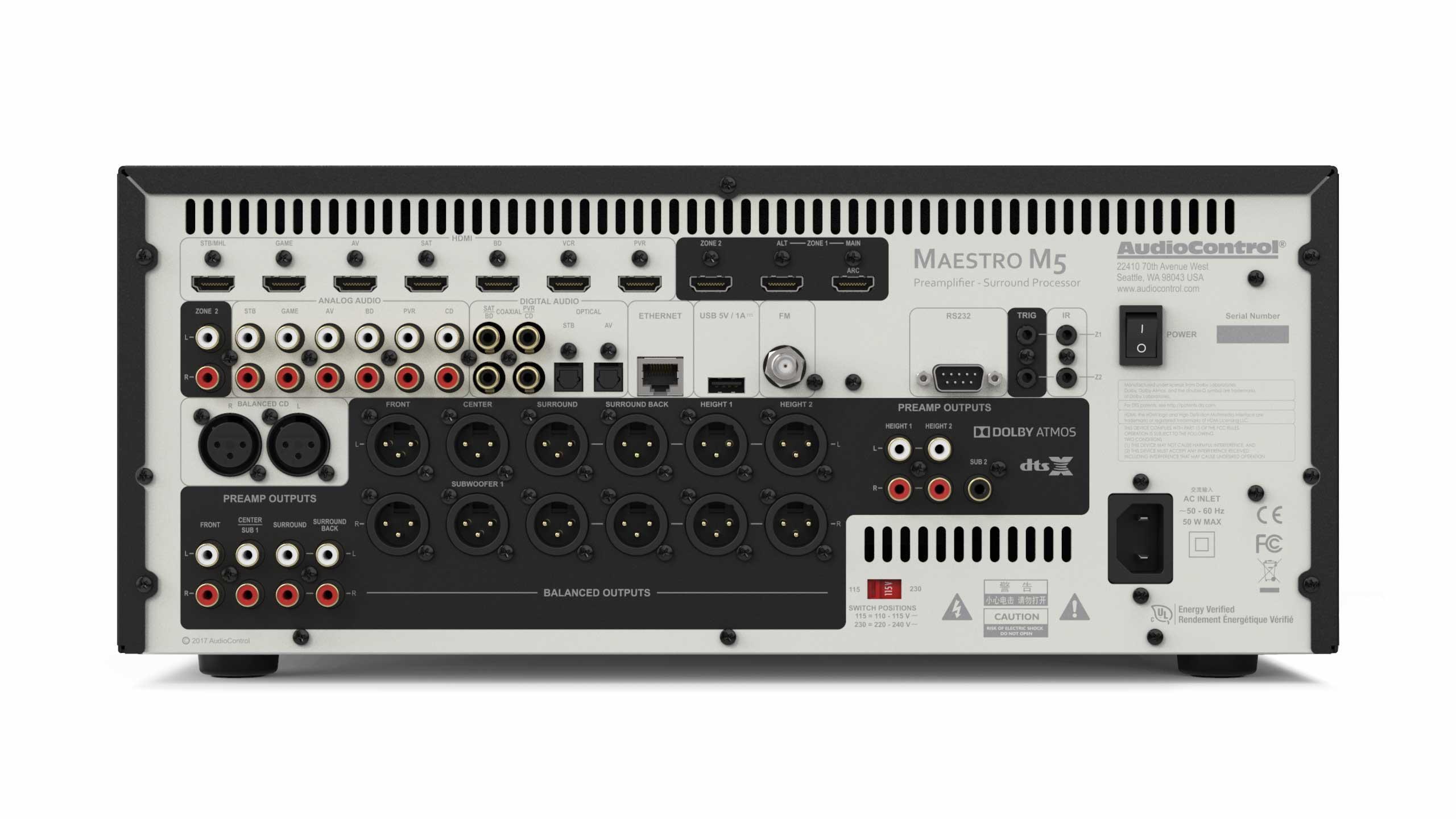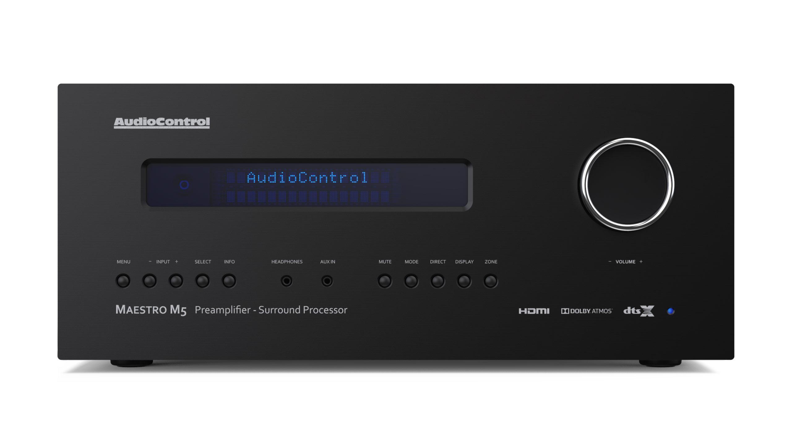 AudioControl on yhdysvaltalainen pitkän linjan AV-laite- ja mittainstrumenttivalmistaja. Yhtiö on nyt esitellyt premium-tason Maestro M5 -nimisen surround-esivahvistimen/prosessorin. Se on 7.1.4 -kanavainen, Dolby Atmos- ja DTS:X -yhteensopiva ja tarjoaa 4K Ultra HD -kuvan läpiviennin. Maestro M5 käyttää Dirac Live -huonekorjausta. Esivahvistinta voi käyttää esimerkiksi yhdessä AudioControlin Savoy G3- ja Pantages G3 -teatterivahvistimien kanssa. Kaukosäädin on ohjelmoitava.