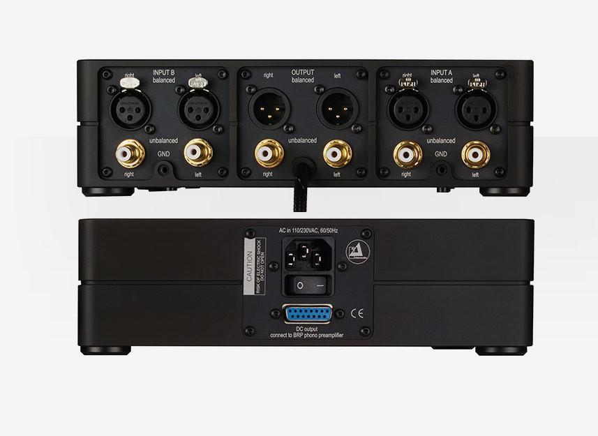 Etupaneelissa on valitsin tuloliitännän valintaan sekä äänenvoimakkuuden säätöpyörä. Takaa löytyy xlr- ja rca-tulot mm- ja mc-rasioille sekä xlr- ja rca-lähdöt. Laitteessa on myös kaksi 6,3 millimetrin kuulokelähtöä, jolloin vinyylejä pääsee kuuntelemaan häiritsemättä naapureita.