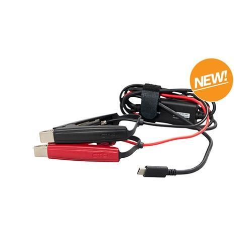 USB-C CHARGE CABLE CLAMPS adapterin avulla voit antaa virtaa CS FREElle nopeasti, turvallisesti ja helposti saatavilla olevasta 12 V:n käyttöakusta. Puristusliitinkaapelin ansiosta voit ladata ja ylläpitää ajoneuvosi akkua missä tahansa ilman, että sinun tarvitsee kytkeä laitetta pistorasiaan. Kiinnitä vain punainen ja musta puristusliitin käyttöakun positiiviseen ja negatiiviseen napaan ja kytke USB-C-liitin CS FREEn latausporttiin. USB-C CHARGE CABLE CLAMPS on kestävä eikä se sotkeudu helposti.