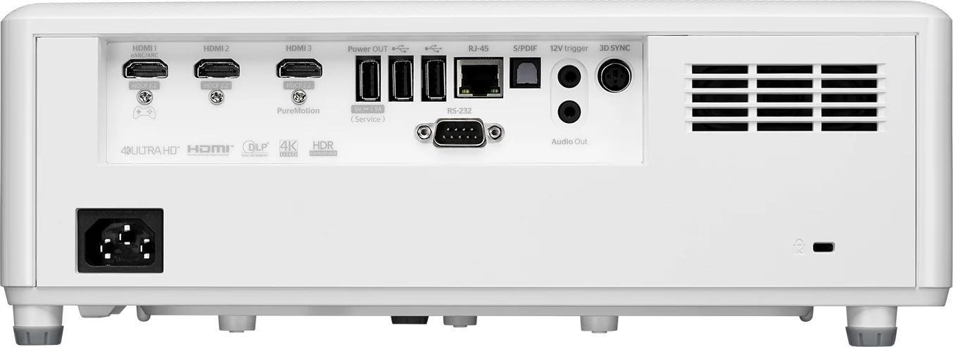 Liitäntöjen saralla tarjolla on muun muassa kolme hdmi 2.0 -ottoa, joista yhdessä on hdmi earc -kanava projektorin kytkemiseen esimerkiksi av-vahvistimeen. Lisäksi mukana on kolme usb-a-tuloa, joihin käyttäjä voi kytkeä esimerkiksi Chromecast- tai Apple TV -donglen, jolloin UHZ50:stä tulee oitis älykkäämpi.