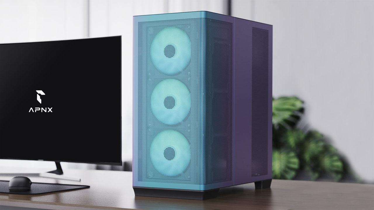 APNX C1 on hillityn tyylikäs ja melko perinteinen tietokonekotelo. Siinä on kuitenkin näyttävä verkkomainen etupaneeli ja se on saatavana kolmella eri värillä. Etenkin ChromaFlair-värivaihtoehto on erittäin mielenkiintoinen, koska se näyttää vaihtavan huurteisen sini-lilahtavaa värisävyään valonlähteestä ja katselukulmasta riippuen. Muut värit ovat musta ja valkoinen. Kaarevat reunat ja täysikokoinen karkaistusta lasista valmistettu sivupaneeli täydentävät kotelon esteettisen hienostuneisuuden. Kotelo on myös käytännöllinen ja siihen on helppo rakentaa haluamansa tietokone. Kotelossa on tilaa jopa 11 tuulettimelle ja se sisältää vakiona neljä esiasennettua APNX FP1 -tuuletinta sekä viiden portin PWM ARGB-hallintakeskittimen.