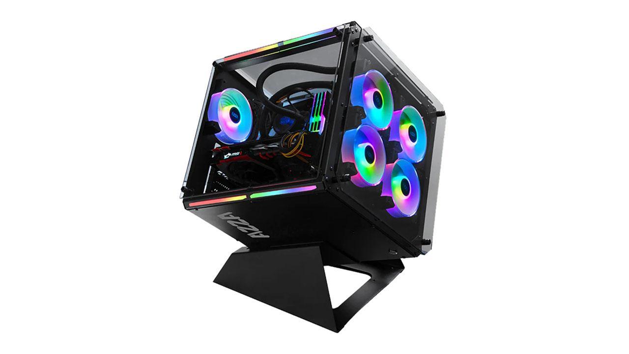 Azza on tunnettu huikeasti muotoilluista koteloistaan. Azza Cube 802 on nimensä mukaisesti upea lasikuutio, joka poikkeuksellisen jalustansa avulla näyttää leijuvan ilmassa yhdellä kulmallaan. Kotelon kolme lasipintaista sivua, RGB-valoraidat ja RGB-valaistut tuulettimet tekevät kotelosta taideteoksen, jonka voisi esitellä häpeilemättä jopa nykytaiteen museossa. Kotelo on lasipinnoistaan huolimatta tukeva metallirunkonsa ansiosta, joka on täysin musta myös sisäpinnoiltaan. Myös lasipinnat ovat tummennettuja, joten tietokoneesta saa rakennettua uljaan tumman kokonaisuuden, jonka valaistus ei jätä ketään kylmäksi.