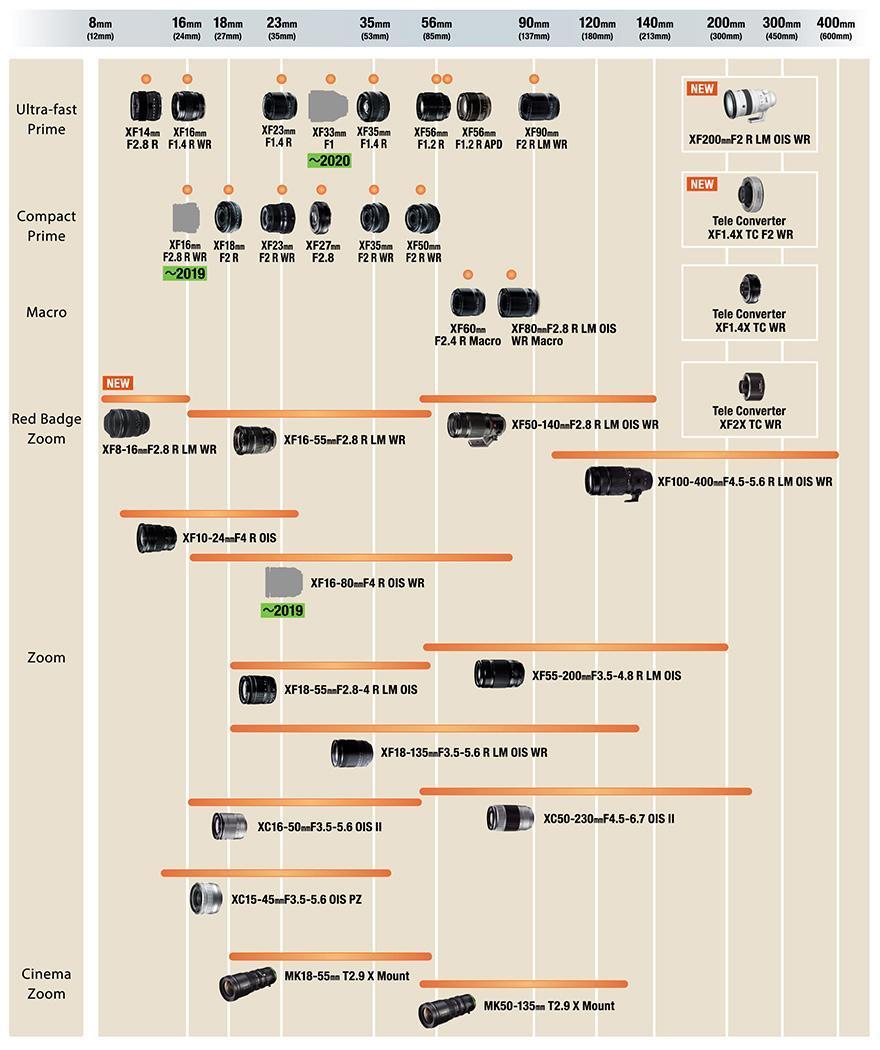Yhtiö päivitti myös roadmapinsa, joka kertoo Fujifilmin suunnitelluista linssiuutuuksista. Sen voi nähdä alta.