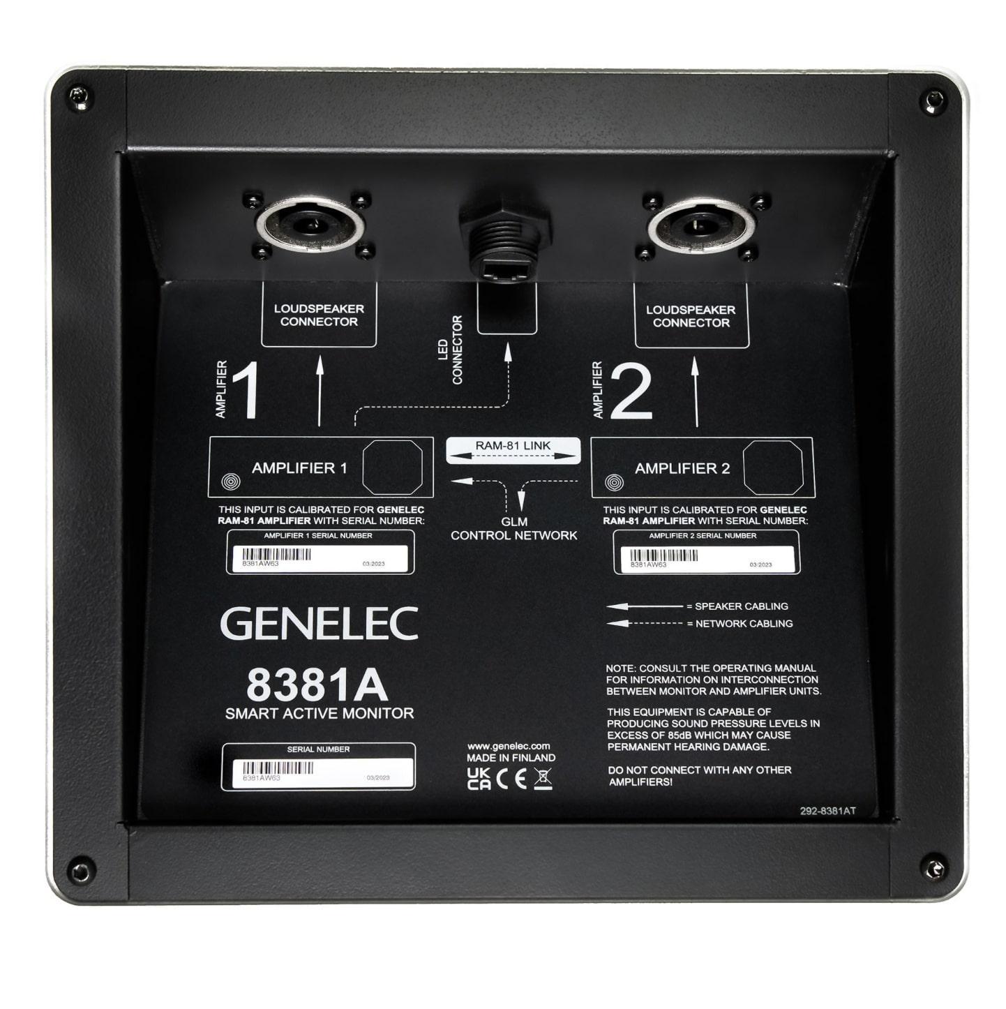 8381A kuuluu Genelecin Smart Active Monitoring (SAM) -perheeseen, joten se integroituu osaksi järjestelmää Genelecin GLM-ohjelmiston avulla, jolla voi konfiguroida, kalibroida ja ohjata kaiken kokoisia Genelec SAM-kaiutinjärjestelmiä. Tuhannet studiot eri puolilla maailmaa käyttävät GLM-ohjelmistoa ja näin kertyneen tiedon avulla GLM osaa vähentää huoneakustiikan haitallisia vaikutuksia, jolloin käyttäjä voi tuottaa äänitteitä, jotka toistuvat täydellisesti muissa järjestelmissä, olipa formaatti stereo, surround tai immersiivinen. GLM sisältää uraauurtavan GRADE-raportin, joka antaa käyttäjälle täydellisen analyysin kuunteluhuoneesta ja kaiutinjärjestelmän suorituskyvystä. Se havaitsee ongelmia ja neuvoo niiden ratkaisemisessa, mikä auttaa käyttäjiä ja studiosuunnittelijoita parantamaan huoneen akustiikkaa, monitorien ja kuuntelupaikan sijoittelua sekä optimoimaan bassonhallintaa.
