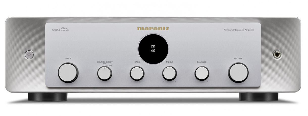 Marantz Model 60n on tyylikäs integroitu stereovahvistin, jossa yhdistyvät perinteinen analoginen vahvistin ja sisäänrakennettu verkkosoitin. Vahvistin tuottaa 60 wattia kanavaa kohden 8 ohmin kuormaan ja 80 wattia 4 ohmiin, mikä riittää hyvin useimmille hylly- ja jalustakaiuttimille normaalissa olohuonekäytössä. Vahvistin perustuu Class A/B -rakenteeseen ja hyödyntää Marantzin omia HDAM-signaalivahvistinpiirejä.