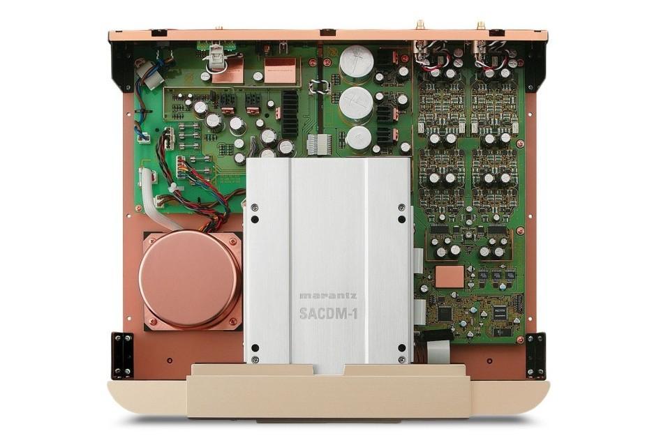 Dacissa häärää kaksi NPC:n (Nippon Precision Circuits) aikoinaan parhaiten mittautuvaa 1-Bit/2.8224MHz DSD SM5866AS Monaural -da-muunninta. Analogisessa lähdössä ei ole operaatiovahvistimia vaan Marantzin omat diskreetit virtatakaisinkytketyt hdam sa2 -bufferimoduulit lyhyillä signaaliteillä ja otosta lähtöön täysin symmetrisellä kaksoisdifferentiaalitopologialla xlr- ja rca-lähdöillä.