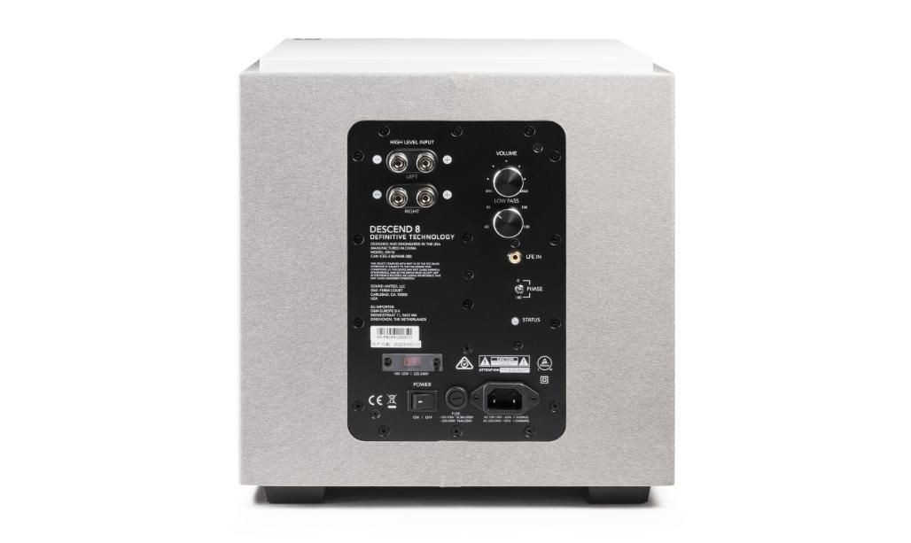 Definitive Technology DN8 on varustettu 500 watin piikkitehon tuottavalla d-luokan vahvistimella, joka on suunniteltu valjastamaan subwooferin kolmen elementin toteutus käyttöön täysverisesti. Resonoimaton kotelo puolestaan on suunniteltu miellyttämään silmää, ja se on saatavana kahdessa nykyaikaisessa, akustisesti läpinäkyvässä viimeistelyssä: keskiyön musta ja jäätikön valkoinen.
