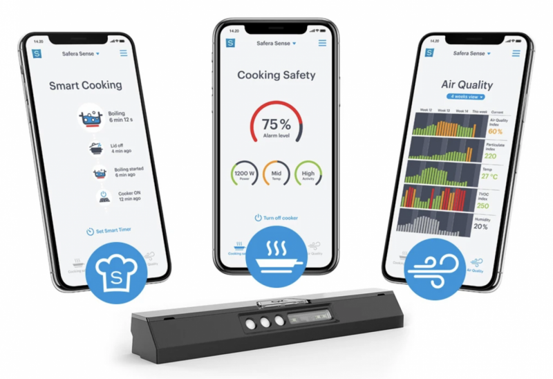 Safera on tunnettu liesivahtituotteistaan ja esitteli tapahtumassa uuden Safera Sense -tuotteen, jota voisi kutsua vaikka älykkääksi keittiösensoriksi (eng. Smart Cooking Sensor). Saa nähdä millä tuotenimikkeellä tämä tulee lopulta Suomessa myyntiin.