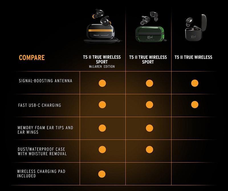 Uudet KlipschT5 II True Wireless Sport -kuulokkeet sisältävät samat ominaisuudet kuin Klipsch McLaren -malli ja niitä on saatavana kahdessa värisenä – mustana ja valkoisena.