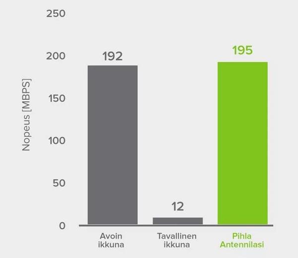 Antennilasin ollessa ikkunassa, mobiiliverkon toimintavarmuus sisätiloissa nousi täysin uudelle tasolle. Mikäli mobiiliverkko toimii ulkona, toimii se Antennilasi-ikkunan kanssa myös sisällä.