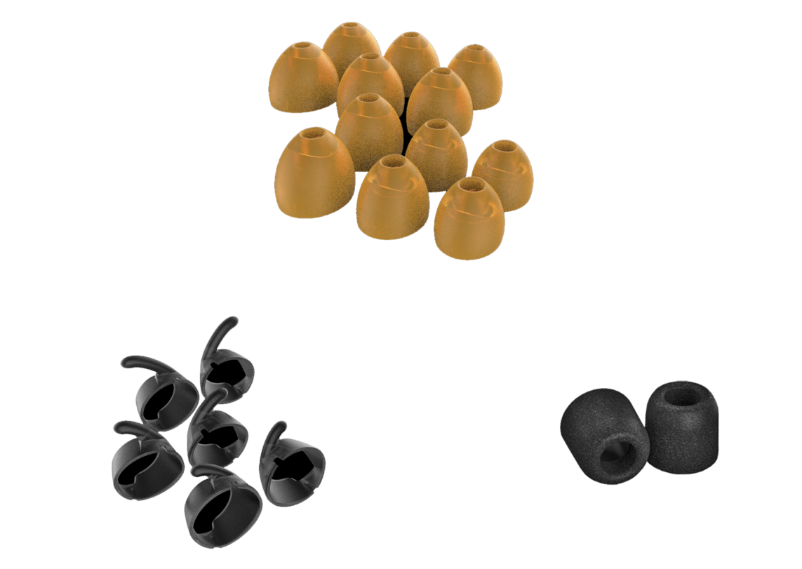 Korvissa pitämisestä puheen ollen, T5 II True Wireless Sportin varustelu on luokassaan hyvällä mallilla – mutta myös syystä. Itse kuulokkeet ovat aavistuksen kookkaat ja raskaahkot, ja niissä on kuuloketyyppiin nähden hiukan pitkähkö torvi, joka menee syvälle korvakäytävään. Hyvä puoli toteutuksessa on se, että ulkoisten äänten eristyskyky on hyvä, mutta toisaalta hyvää asentoa ja parhaiten istuvia korvasovittimia saa aluksi hiukan hakea. Sovittimia paketissa on huimat seitsemän kappaletta: kuusi erikokoista ovaalimallista silikonisovitinta sekä yksi pari memory foam -sovittimia. Näiden lisäksi mukana on kolme siivekettä, joilla kuulokkeet saa lukittumaan paremmin paikalleen.