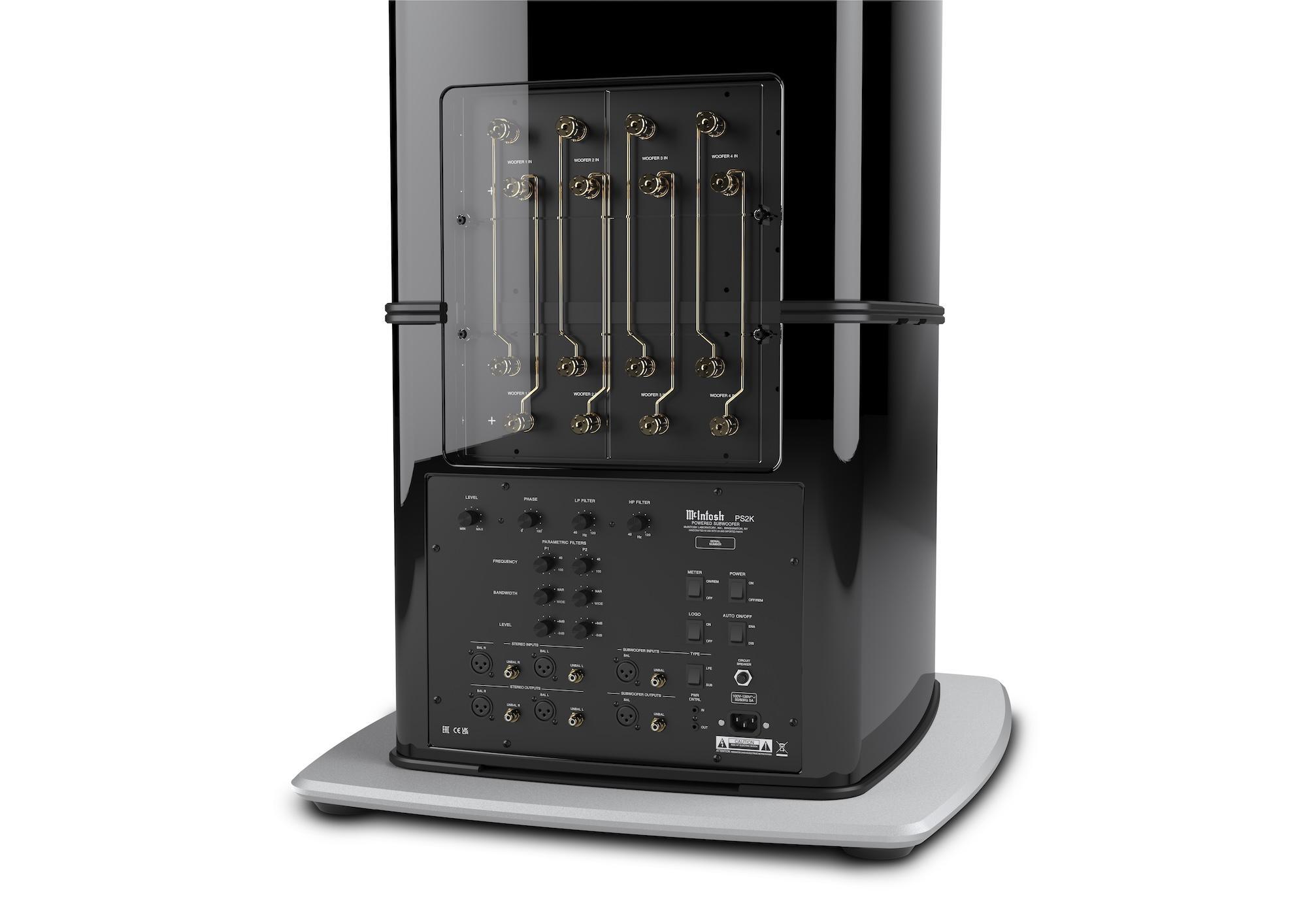 PS2K Subwoofer:issa on neljä 13 tuuman bassoelementtiä massiivisilla magneeteilla. Tämä huippuluokan järjestelmä hyödyntää McIntoshin patentoitua Low Distortion High Performance (LD/HP®) Magnetic Circuit Design -tekniikkaa. Innovaatio vähentää merkittävästi vääristymiä samalla kun se parantaa kaiuttimen teho-ominaisuuksia ja tehokkuutta. Jokainen neljästä bassokaiuttimesta käyttää omaa 500 watin D-luokan vahvistinta, jotka yhdessä tuottavat uskomattoman 2 000 watin yhteistehon. Nämä vahvistimet on huolellisesti kalibroitu minimoimaan vääristymiä ja tuottamaan kristallinkirkasta, tiukkaa bassoa hämmästyttävän alhaisilla vääristymillä, jopa kaikkein tilavimmissa kuuntelutiloissa.
