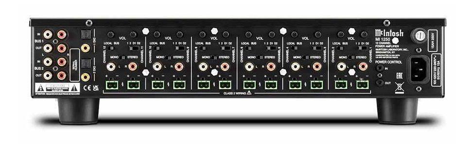McIntosh on esitellyt järeän 12-kanavaisen päätteen kotiteatterikäyttöön. MI1250 tarjoaa 50 watin tehon kanavaa kohti 8 ohmin kuormalla ja 90 watin tehon 4 ohmiin. Koska D-luokan päätteet eivät juuri lämpene, kotelossa ei tarvita elokuvaelämystä heikentäviä tuulettimia.