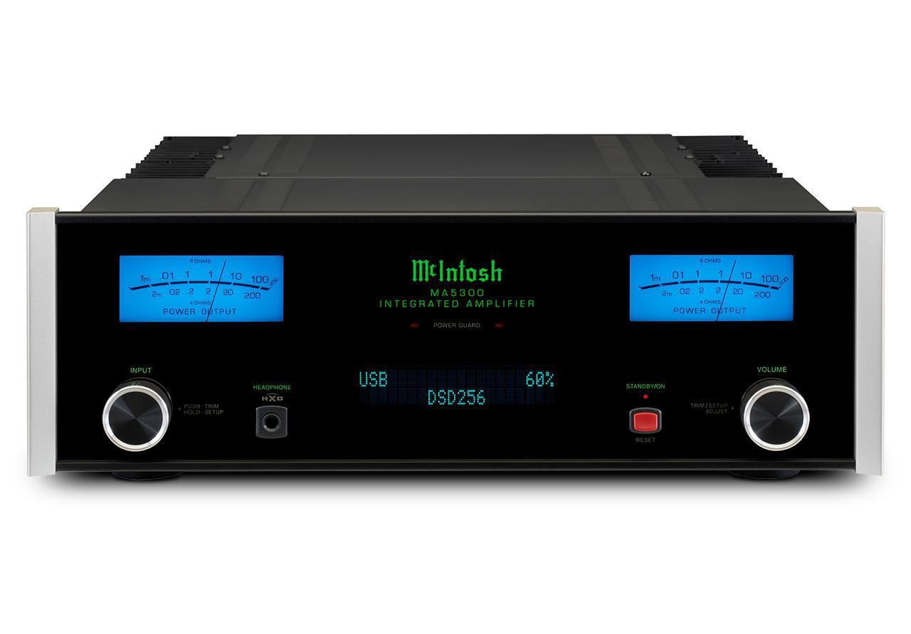 McIntosh on julkistanut yhtiön mittakaavassa pienikokoisen integroidun MA5300-vahvistimen. Teho on niin ikään McIntoshin pienempää laitaa, eli 2 x 100 wattia kahdeksan ohmin kuormalla ja 160 wattia neljään ohmiin. Mikroprosessoriohjainta on uudistettu. Esilämmittelyaikaa lyhentää päätetransistorien jäähdytysrimat. Ulkonäkö on tuttua McIntoshia mustine lasipaneeleineen ja sinisine mittareineen. Laitteessa on myös basson ja diskantin säädöt sekä kuulokevahvistin, jossa on crossfeed-säätö.