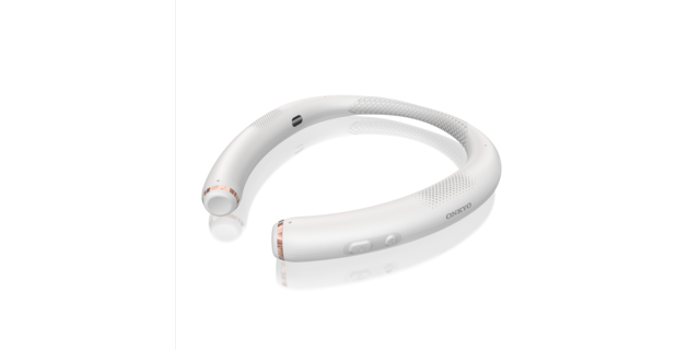 AI Smart Wearable (VC-NX01) taas on niskan ympärille aseteltava hands-free-kaiutin. Se aktivoituu automaattisesti, kun sen asettelee niskaansa, kompensoi ympäristöääniä ja tukee tekoälytoimintoja.