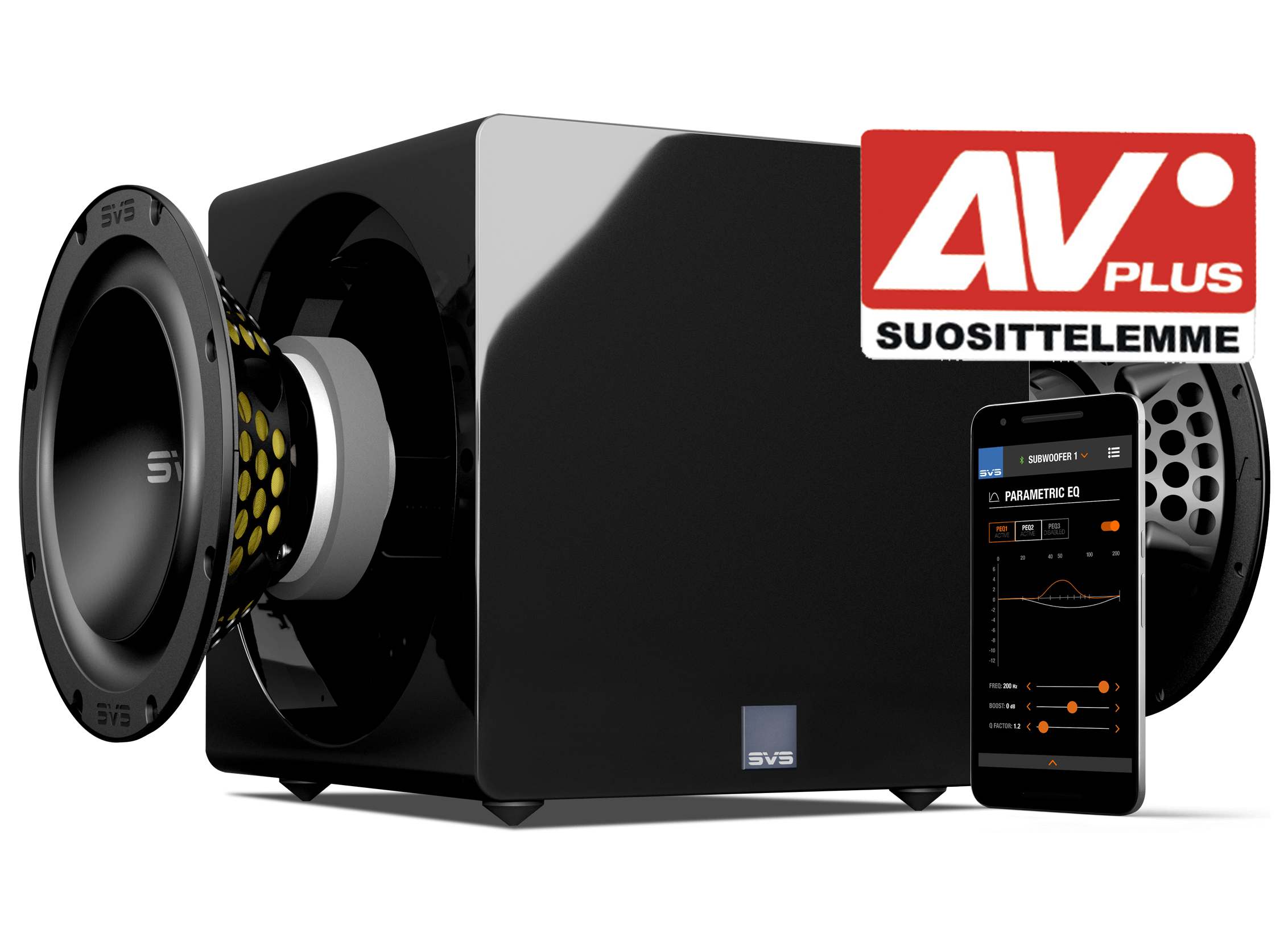 SVS-ohjainsovellus löysi subwooferin testissämme automaattisesti ja pelasi pitkin kuunteluja juuri kuten pitääkin. Monet varsinkin vasta-alkajia askarruttavat säädöt ovat helposti ja loogisesti tarjolla sovelluksen valikossa. Säädettävissä on muun muassa subwooferin taso, alipäästösuodatuksen taajuus, vaihe, polariteetti, parametrinen taajuuskorjain ja huonesovitus, ja sovelluksessa on mukana vieläpä neuvoja ja ohjeita käyttöön, joskin englanniksi.
