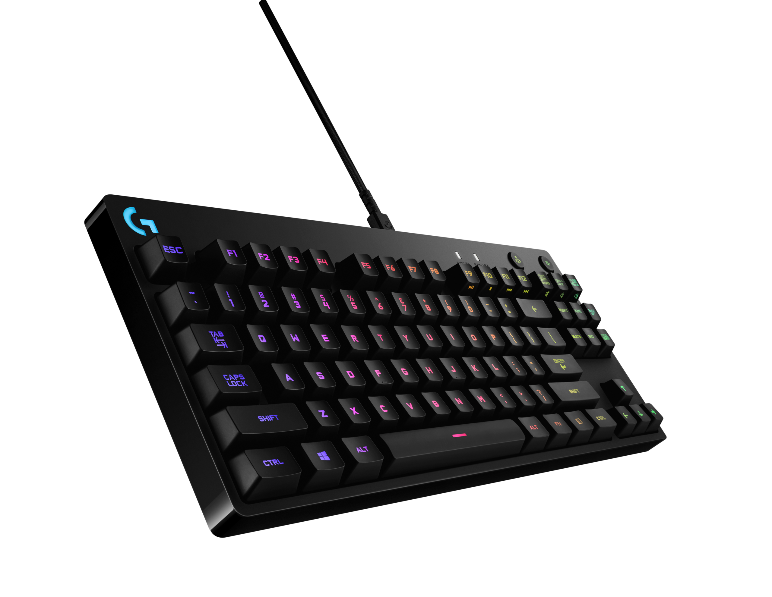 Logitech G Pro -näppäimistössä on myös 16,8 miljoonan värin räätälöitävä rgb-valaistus. Sen ansiosta näppäimet voidaan valaista vaikkapa pelin tapahtumien mukaan. Erillisiä näppäimiä voidaan valaista myös sen mukaan, mitä pelissä tarvitaan. Valaistusasetukset voidaan tallentaa näppäimistön muistiin.