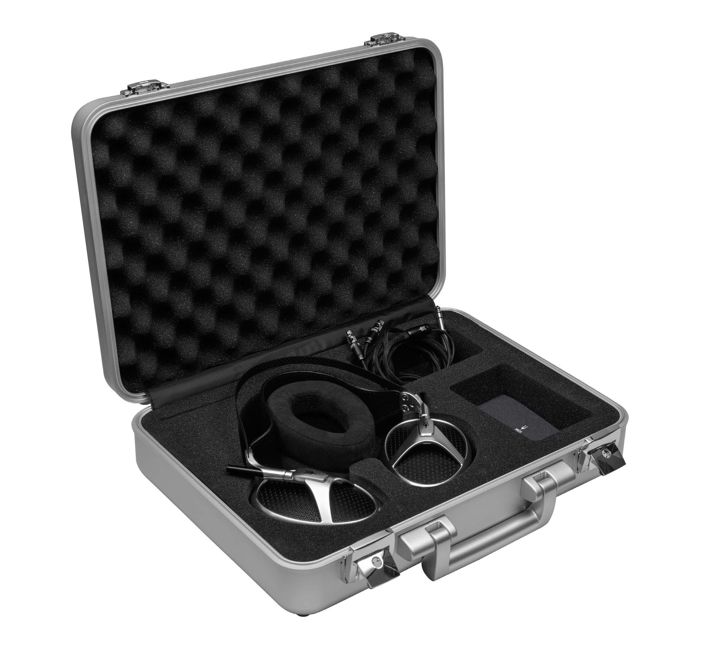 Kaiken kruunaa kuulokkeiden mukana toimitettava upea alumiinisalkku, jonka pehmusteiden lomasta löytyy kuulokkeiden ohella kaksi paria korvatyynyjä (25-millimetrinen nahka/alcantara-hybridi sekä 30-millimetrinen pelkkä alcantara), kolmen metrin kaapeli happivapaasta kuparista 6,3 millimetrin stereoplugilla sekä aitoustodistus.