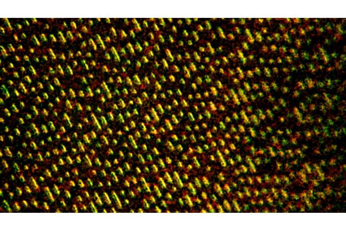 Suurennos cd-levyn lukupinnasta. Miljardeista tasaisista kohdista ja kuopista koostuva spiraalimainen jono sisältää datan binäärisessä muodossa. Cd-soittimen lukukoneisto lähettää sen mikropiirin ja da-muuntimen tulkittavaksi.