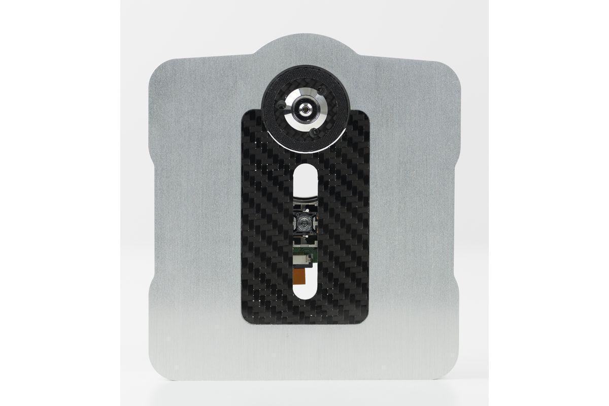 Kuvassa Pro-Ject RS2T -cd-pyörittimen koneisto. Keskellä kiskoa pitkin liikkuva lukukoneisto komponentteineen.