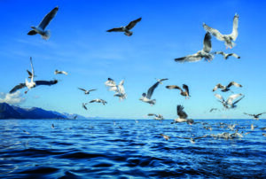Lyhyt 1/1600 s. valotusaika on pysäyttänyt lintujen liikkeen täysin kesken lennon.