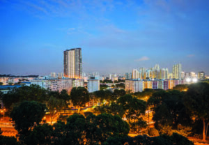 Tässä heti auringonlaskun jälkeen kuvatussa kaupunkinäkymässä valotusaika oli 8 s. ja kamera jalustalla.