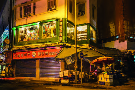 Tämä hongkongilainen yönäkymä valottui 6 s. ajan, ja tässäkin kamera oli jalustan päällä.