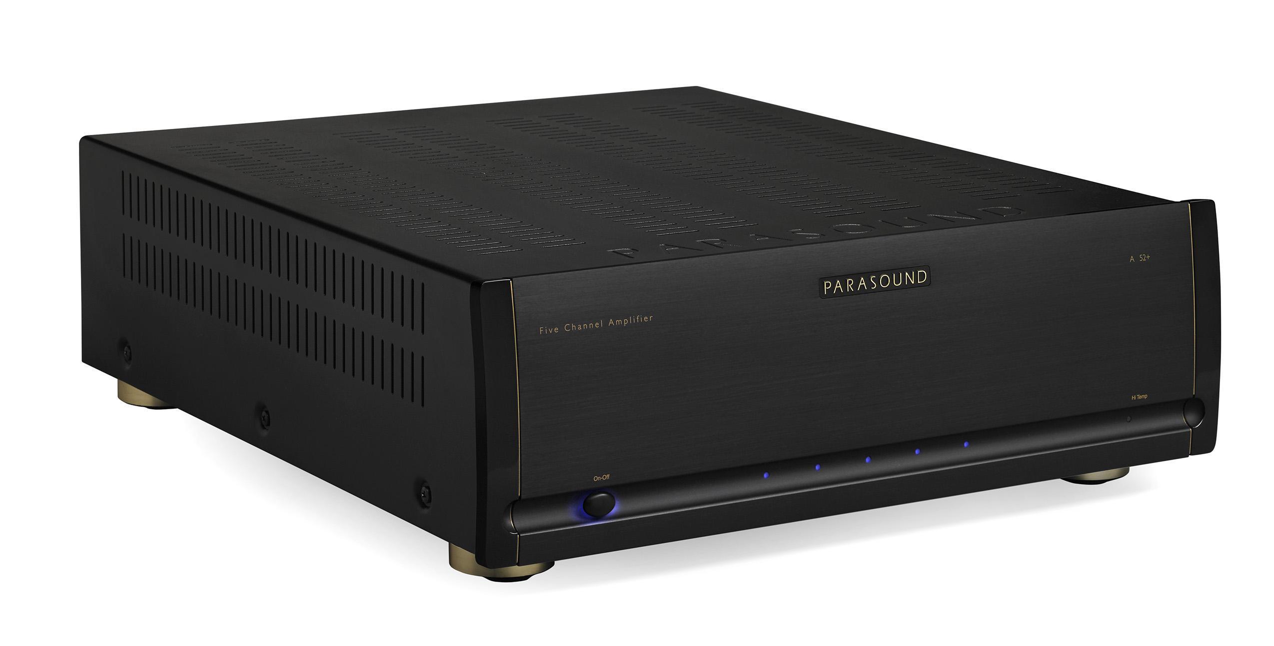 Parasound on esitellyt uuden version viisikanavaisesta Halo A-52-vahvistimestaan. Se on saanut nimensä perään plus-merkin ja lisää tehoa – se tuottaa kahdeksan ohmin kuormalla 180 wattia ja neljällä ohmilla 255 wattia per kanava, kun kaikki kanavat ovat käytössä. Edeltäjänsä tapaan vahvistin on A/AB luokkaa. Aiempaa suurempi toroidimuuntaja avittaa lisätehojen tuottamisessa.