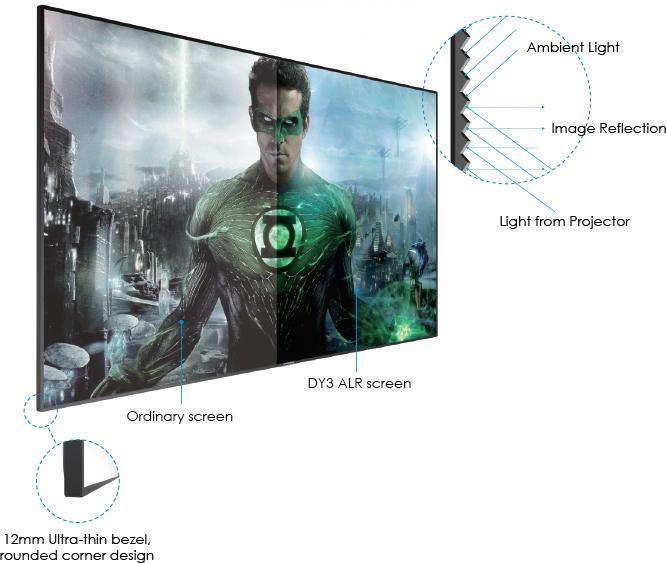 Esimerkiksi Grandview ALR Dynamique on suunniteltu heijastamaan eteenpäin vain alaviistosta, ja muusta suunnasta saapuvaa valoa kangas taas pyrkii himmentämään. Tästä tulee kankaan mallimerkinnän ALR-lyhennekin: Ambient Light Rejection, joka tarkoittaa vapaasti suomennettuna hajavalon vaimennusta.