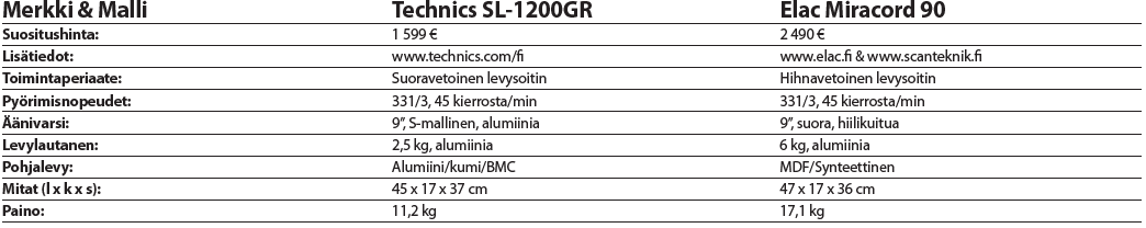 Vertailimme kahta erilaista levysoitinta eri toimintaperiaatteilla mutta samalla tavoitteella, joka on luonnollisesti saada levy pyörimään mahdollisimman häiriöttömästi. Hihnavetoisen Miracordin hiljainen ja värähtelemätön moottori pyörittää poikkeuksellisen raskasta levylautasta, mikä takaa erittäin tasaisen rotaation. Suoravetotekniikan edelläkävijässä Technicsissä taas levylautanen on olennainen osa itse moottoria.