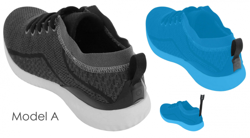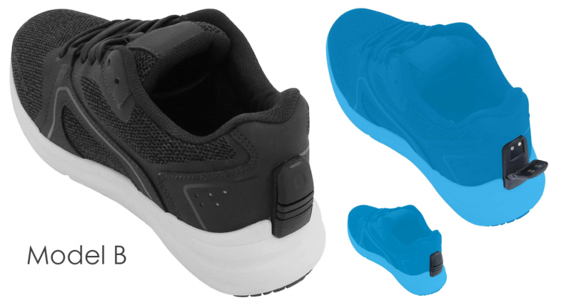 Kahdesta lenkkarimallista A:ssa älysensori aktivoidaan ja sammutetaan vetämällä kengän takana sijaitsevasta lenkistä.