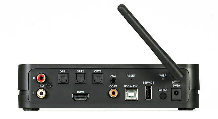 Erikseen ostettavassa hubissa on digiliitäntöinä kolme optista tuloa, koaksiaalitulo, hdmi (arc), usb sekä analogiselta puolelta rca-pari ja aux-sisääntulo. Langattomista onnistuu bluetooth aptx, dlna, Airplay, Chromecast ja Spotify Connect. Sovelluksen kautta on käytettävissä muun muassa Tidal ja Spotify. Mukana tulee kaukosäädin.
