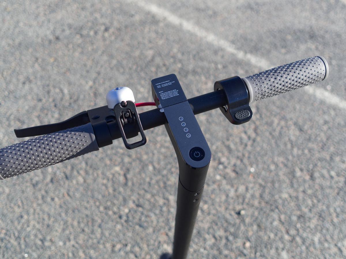 Kaasua annostellaan peukalolla ja vauhtia pystyy hillitsemään lokasuojan päälle astumisen lisäksi käsivälitteisesti. Neljän ledin rivi kertoo akun lataustilasta.