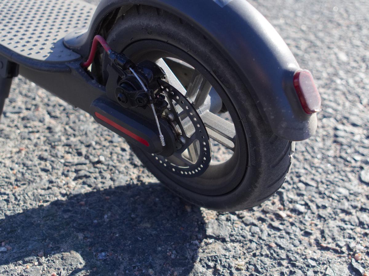 Xiaomin potkulaudassa on luottamusta herättävät varusteet: ilmatäytteiset renkaat, abs-levyjarrut ja jarruvalo.