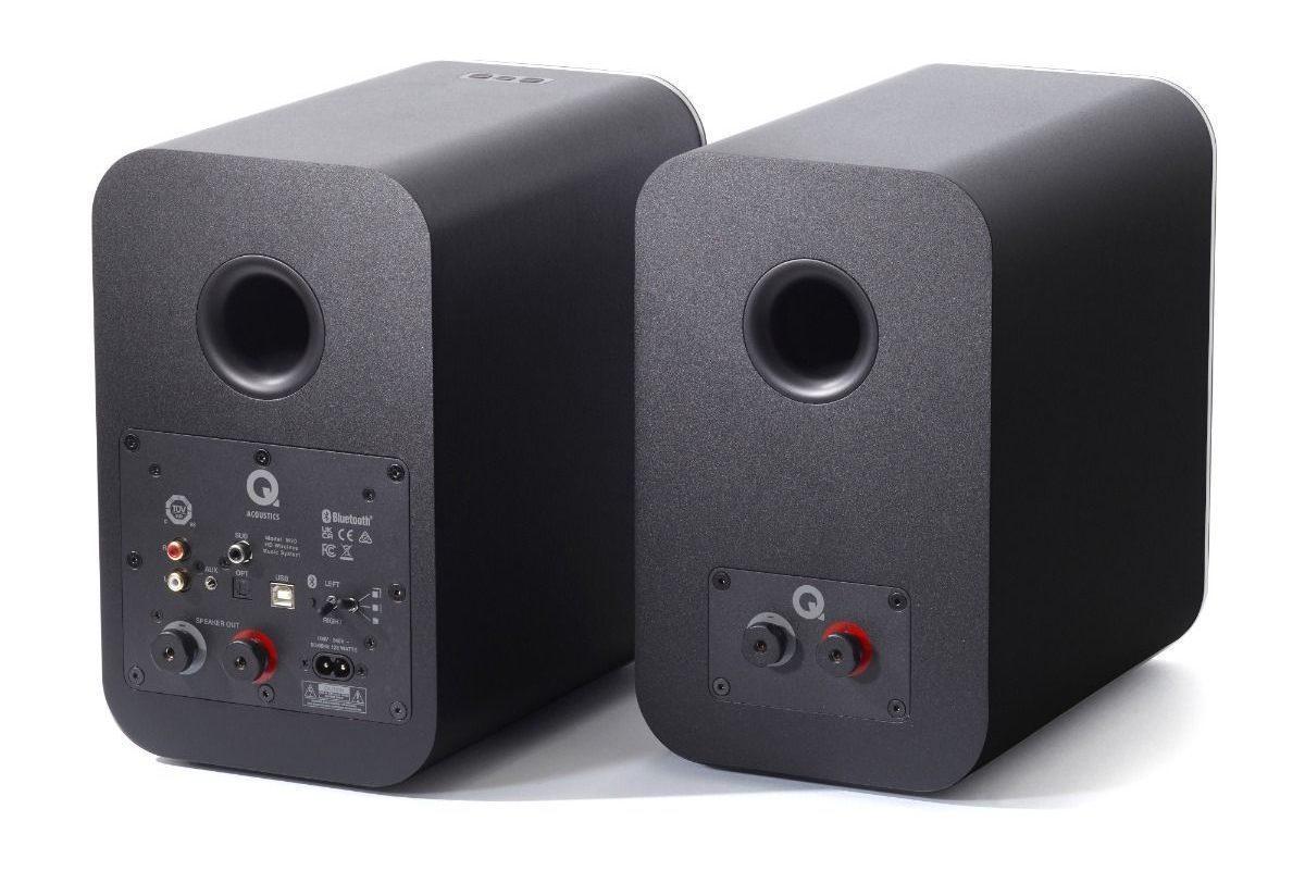 Kaiuttimissa on 125 millimetrin basso/keskiäänielementti ja 22 millimetrin diskanttielementti, ja refleksiportti on sijoitettu kaiuttimen takaosaan. Tehoa irtoaa 2 x 65 wattia. Fyysisinä sisääntuloina on optinen liitäntä esimerkiksi televisiota varten, linjatasoinen RCA, 3,5 mm aux ja USB-B, jonka kautta onnistuu 24 bitin ja 192 kilohertsin digiäänen siirto. Jos pikkukaiuttimien kaveriksi kaipaa tanakampaa bassontoistoa, se onnistuu subbarilähdön avulla.