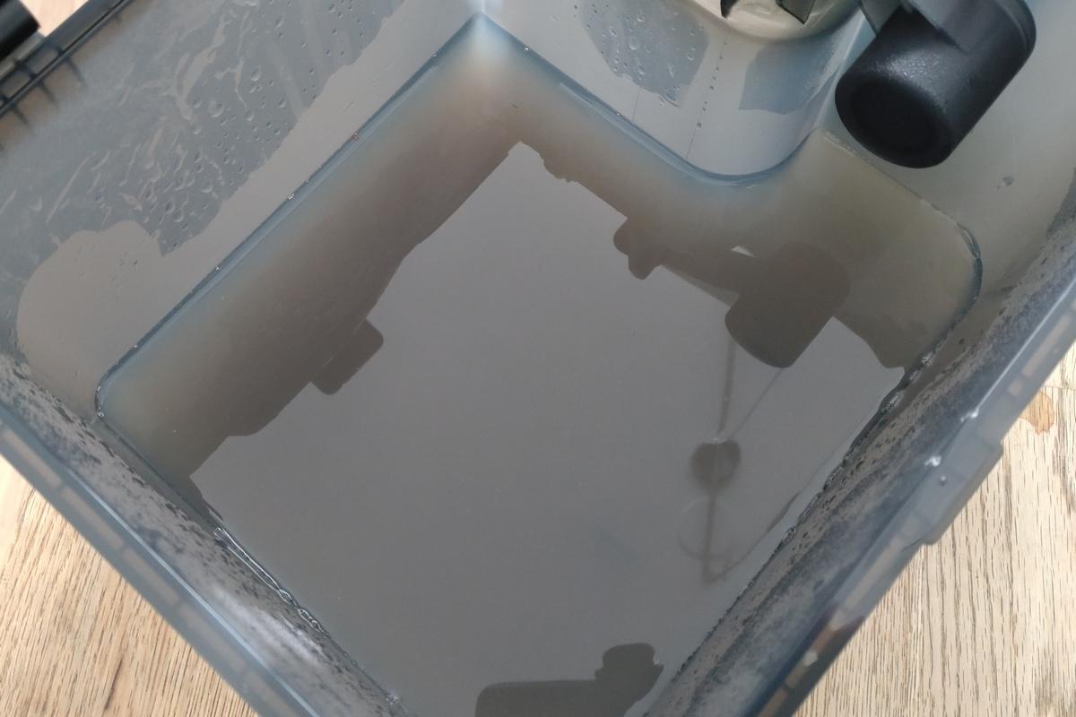 Moppausveteen sekoitetaan myös pesuainetta. Tästä ei tosin ollut ohjeissakaan mitään tietoa: Mitä se on ja mistä sitä saa? No googlettamalla selvisi, että Roborockilla on omaa (=kallista) Cleaning Solution -liuosta, mutta todennäköisesti myös muut moppaaviin robotti-imureihin tarkoitetut ja yleensä lattian pyyhintään tarkoitetut vaahtoamattomat puhdistusaineet ajavat asiansa.