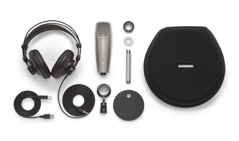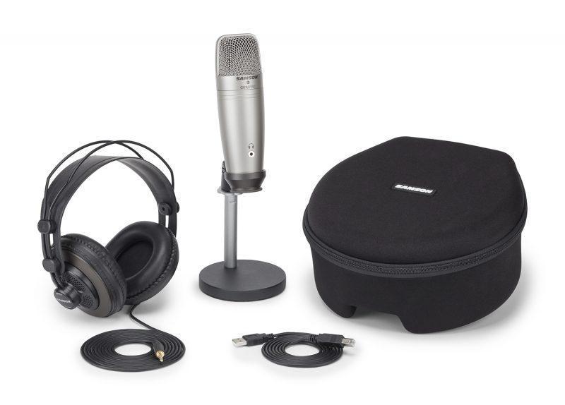 Samson on koonnut edullisen peruspaketin podcast- ja muuhun äänityskäyttöön. Siihen kuuluu C01U-mikrofoni, pöytäteline ja puoliavoimet SR850-kuulokkeet.