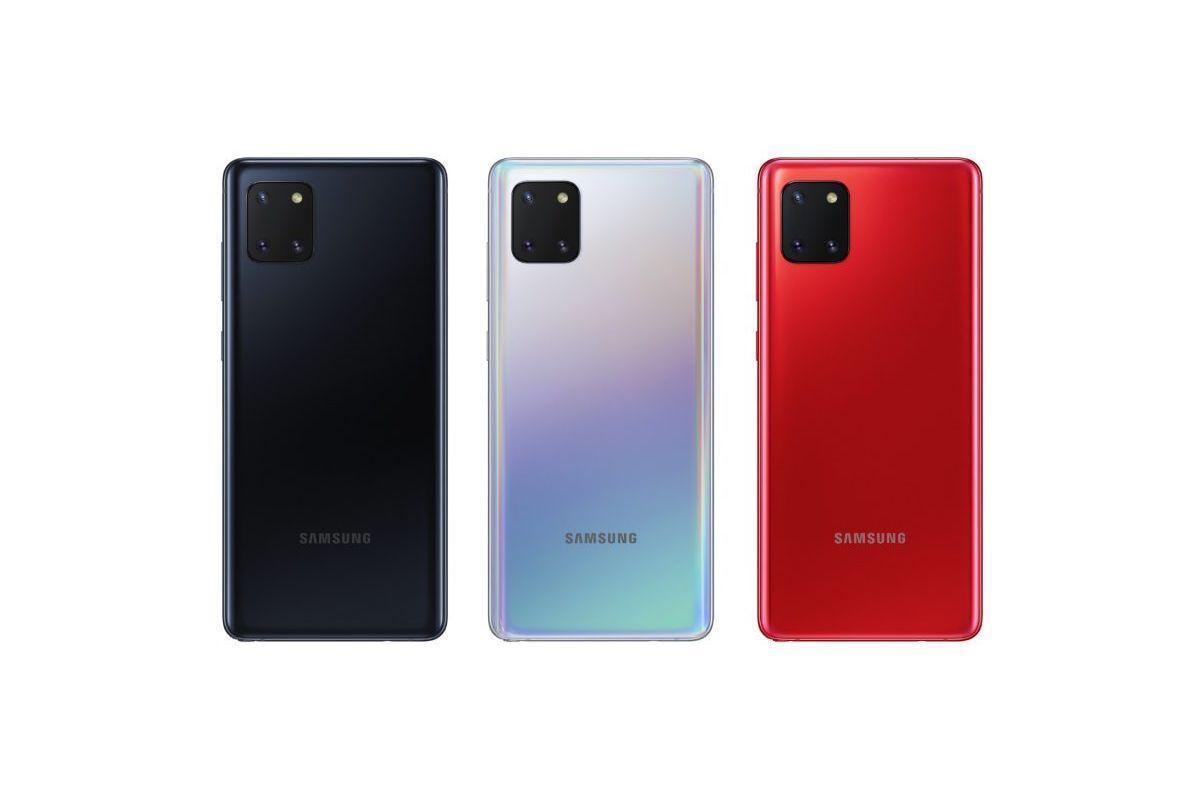 Galaxy Note10 Liten näyttö on vastaavanlainen kuin Galaxy S10 Litessä, mutta puhelin ei tue HDR10+-kuvaa. Takakameroita on niin ikään kolme kappaletta, mutta pääkamerana on 48 megapikselin sijaan vain 12 megapikselin kamera, jossa on kuitenkin valovoimaisempi f/1,7-aukkosuhde. Myös ultralaajakulmakamerassa ja kaksinkertaisen zoom-kertoimen telekamerassa on 12 megapikselin kenno. Aukot ovat f/2,2 ja f/2,4. Näyttöreikään sijoitetussa 32 megapikselin kamerassa on f/2,0-aukkosuhde. Puhelimella pystyy kuvaamaan 4K-kuvaa 60 fps nopeudella.