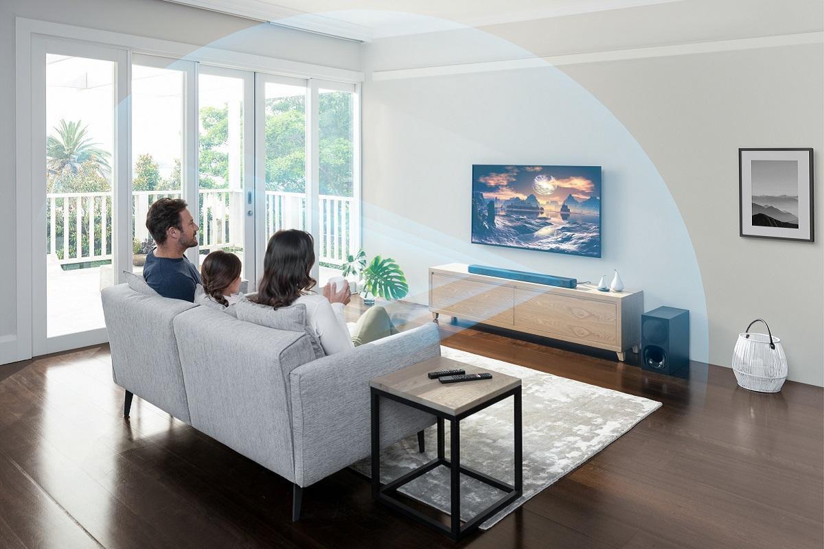 HT-G700 on 3.1-kanavainen Dolby Atmos- ja DTS:X kaiutin, tuottaa laadukkaan ja voimakkaan surroundäänikokemuksen, toistaen myös elokuvien ja tv-sarjojen dialogit helposti kuultavasti. HT-G700 sisältää soundbarin lisäksi tehokkaan ja langattoman subwooferin, joka antaa syvemmän ja rikkaamman bassoäänen. Myös laitteen asennus on nopeaa ja helppoa Bluetooth- tai HDMI eARC / ARC-yhteyden kautta.