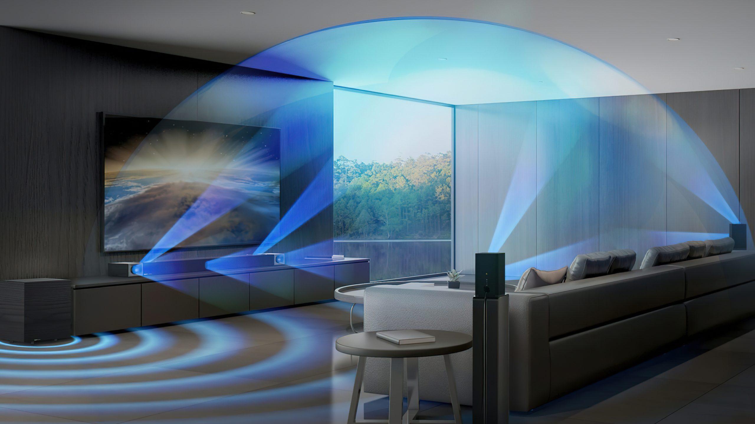Paketissa isoimman lohkon vie 12-tuumaisella elementillä varustettu langaton aktiivinen subwoofer, joka on oikeasti iso ja painava: mitoiltaan 39,6 x 51,6 x 40,3 senttimetriä ja massaltaan himpun yli 21 kilogrammaa. Eikä itse soundbarkaan kovin pieni kategoriassaan ole, sillä senkin mitat ovat kunnioitettavat 137,2 x 7,5 x 15,7 senttimetriä ja paino noin 7,5 kilogrammaa. Pakettiin kuuluvat kaksi aktiivista ja langatonta surround-kaiutinta puolestaan ovat jokseenkin kompaktit, mitoiltaan 12 x 22 x 12 senttimetriä ja painoltaan noin 1,4 kilogrammaa kappale.