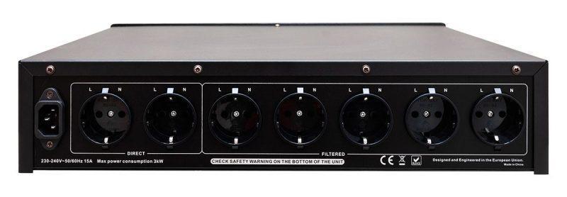 PF-2000:ssa on viisi suodatettua ja kaksi suoraa pistokepaikkaa. Enimmäiskuormitukseksi ilmoitetaan 15 ampeeria tai 3 000 wattia. Laitteen oma virtajohto on irrotettava.