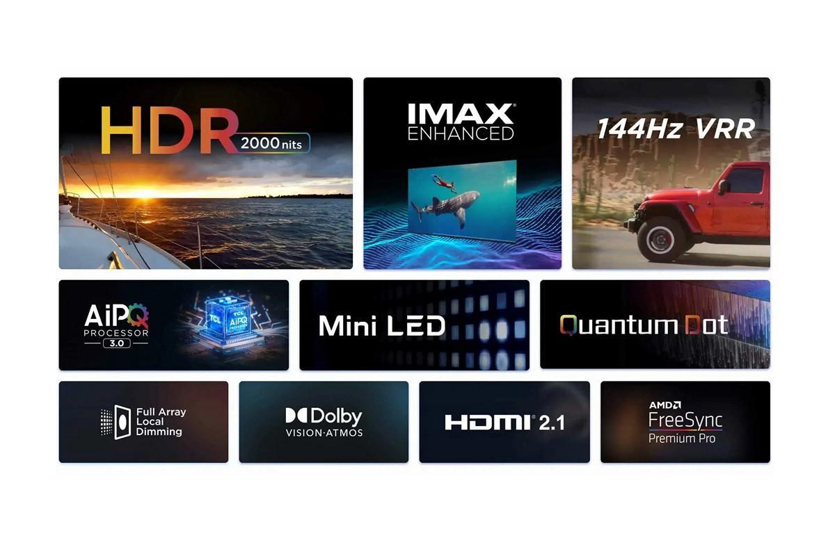 TCL:n Game Master Pro 2.0 tarjoaa erilaisia työkaluja pelikokemuksen parantamiseksi, kuten Shadow Enhancement, VRR ja ALLM, sekä 240 Hz:n pelikiihdyttimen ruudunpäivitysnopeuden lisäämiseksi. Laitteessa on liitäntöinä neljä HDMI 2.1 -porttia, HDMI eARC ja USB 2.0. Lisäksi televisiossa on kaksi sisäänrakennettua 15W kaiutinta, jotka tukevat Dolby Atmosia ja DTS Virtual:X:ää.