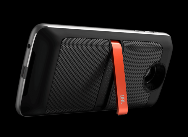 Motorolan Z-sarjan puhelimien erikoisuus on se, että niihin voi hankkia erilaisia lisäominaisuuksia kuorimoduuleilla. Äänentoiston ystäville yksi kiinnostavimmista on JBL Soundboost 2 -kaiutinkuori, jonka luvataan tarjoavan monikanavan kuuloista ääntä.