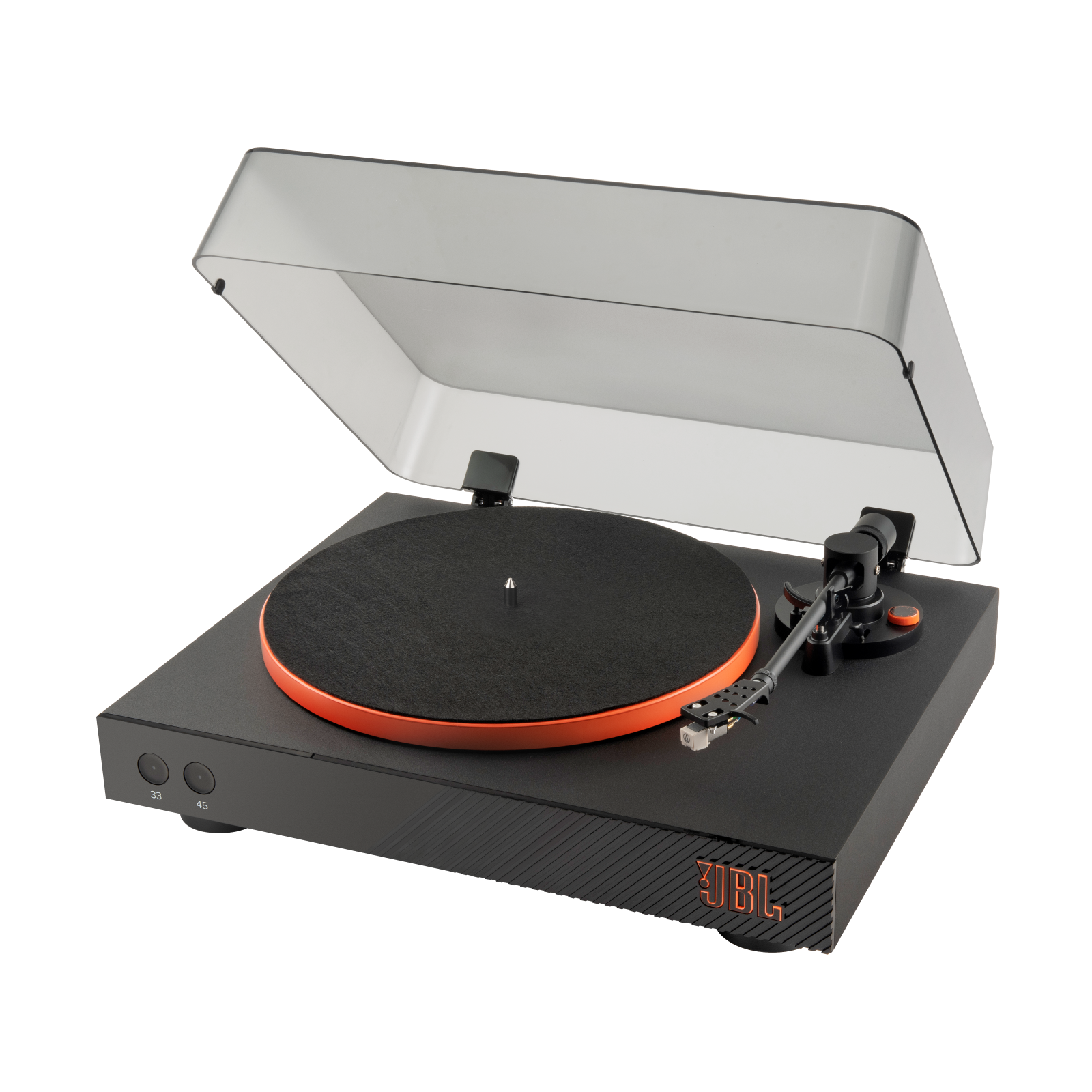 Soittimen tyylikäs ulkonäkö muodostuu alumiinisesta levylautasesta ja äänivarresta, mustasta MDF-pohjasta JBL:n kultaisilla tai oransseilla korostuksilla, modernista etupaneelista ja saranoilla varustetusta pölysuojasta.