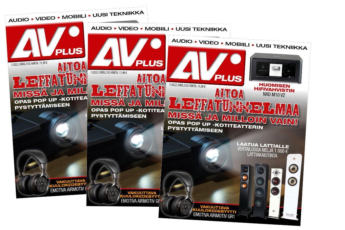 Uusi AVPlus 1/2022 on ilmestynyt – Mukana tonnin lattiakaiuttimien sekä kahden Full HD -ja Ultra HD -projektorin vertailut ja opas popup-kotiteatterin pystyttämiseen