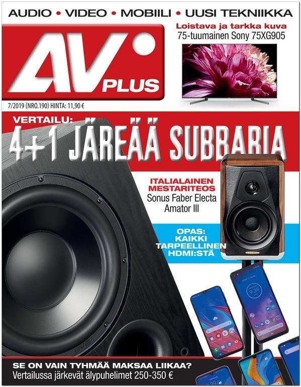 Uusi AVPlus 7/2019 on ilmestynyt – printtiin palanneessa numerossa esimerkiksi ennakkokatsaus HIFImessuista, alle 350 euron järkipuhelimet ja 12 tuuman subbarit