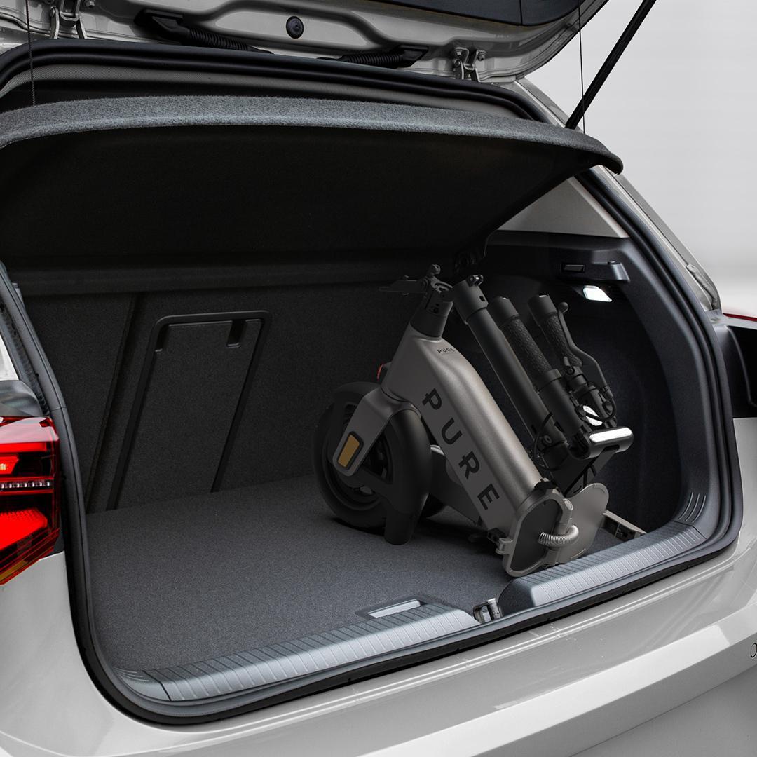Pure Advance -mallissa on ainutlaatuiset kokoontaitettavat ohjaustangon kahvat ja jalansijat, joiden ansiosta se on kompakti säilyttää. Pure Advance on ominaisuuksiensa ansiosta jopa 70 % kapeampi kuin perinteinen sähköpotkulauta. Jos haluat vielä enemmän joustavuutta, Pure Advance Flex taittuu viidessä osassa. Pure Advance Flex on suorituskyvystään tinkimättä erittäin kompakti ratkaisu, joka mahtuu mukavasti auton tavaratilaan, julkisen liikenteen kulkuneuvoihin tai pieneen tilaan kotona.