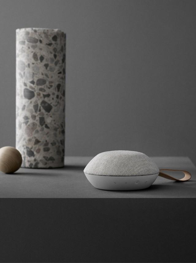 Alumiinipintaisena kaiutin on laavakiven ja tekstiilipintaisena hiekkakiven värinen. Ripustaminen ja kantaminen onnistuu nahkahihnan avulla. Mukana tulee matkapussi ja usb-c-kaapeli.
