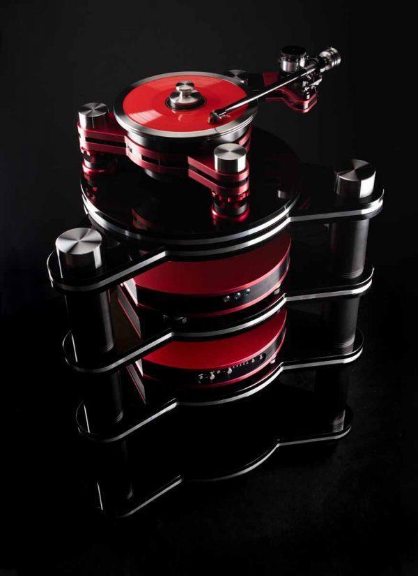 VPI Vanquish Stand -räkissä on käytetty samaa designia ja materiaaleja kuin VPI Avenger Series -levysoittimessa. Siinä on myös urat kaapelien piilottamista varten.